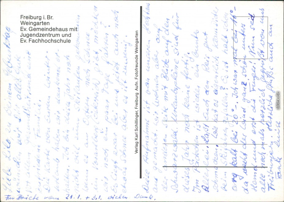 Ansichtskarte: Weingarten - Ev. Gemeindehaus mit Jugendzentrum und Ev. Fachhochschule - Freiburg im Breisgau