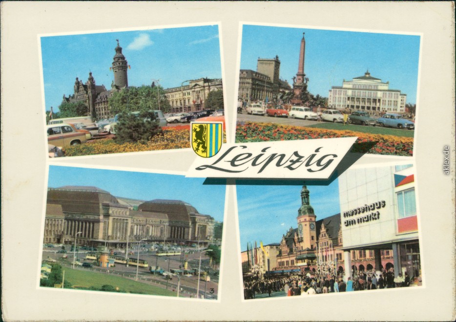 Ansichtskarte: Neues Rathaus, Karl-Marx-Platz, Hauptbahnhof, Altes Rathaus - Leipzig