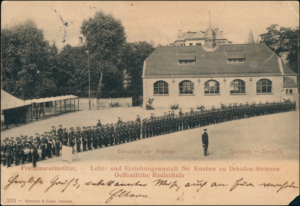 Ansichtskarte: Freimauererinstitut - Realschule - Schüler - Striesen-Dresden