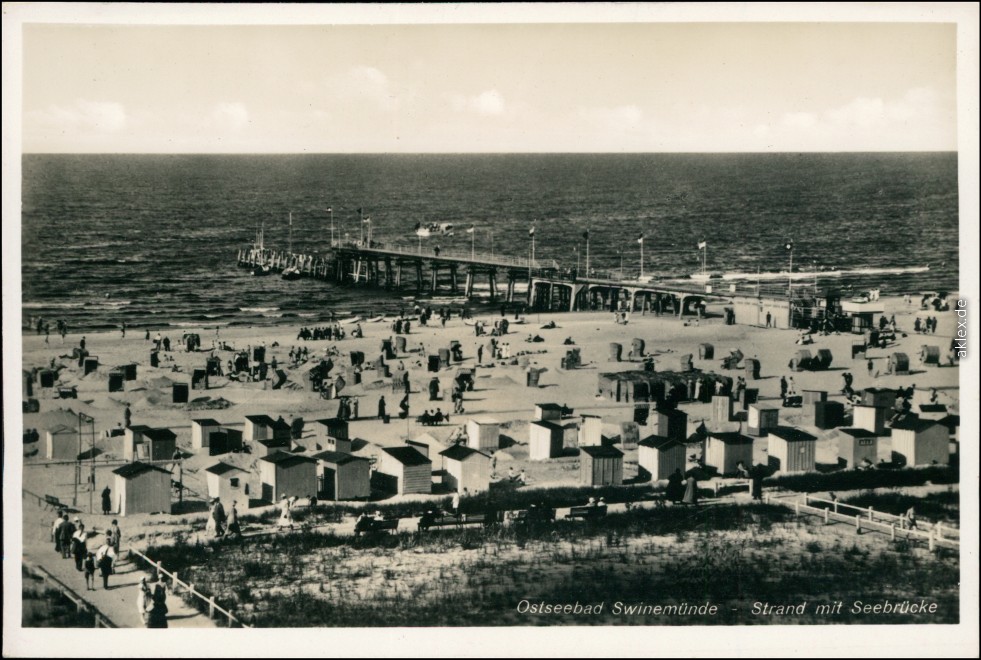 Foto Karte: Strand, Seebrücke und Hütten - Swinemünde