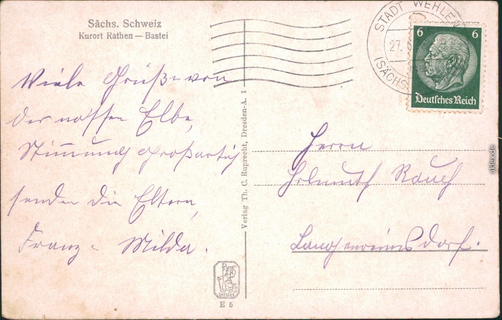 Ansichtskarte: Panorama-Ansicht mit Elbdampfern - Rathen