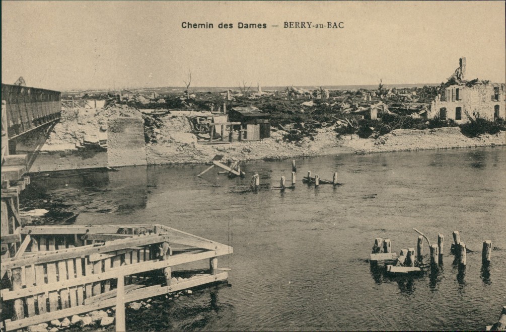 Ansichtskarte: Chemin des Dames - 1. WK - zerstörte Stadt - Berry-au-Bac