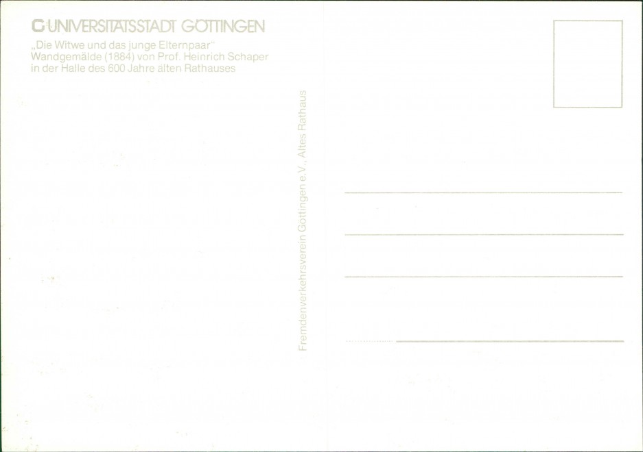 Ansichtskarte: altes Rathaus - Wandgemälde "Die Witwe und das junge Elternpaar" - Göttingen