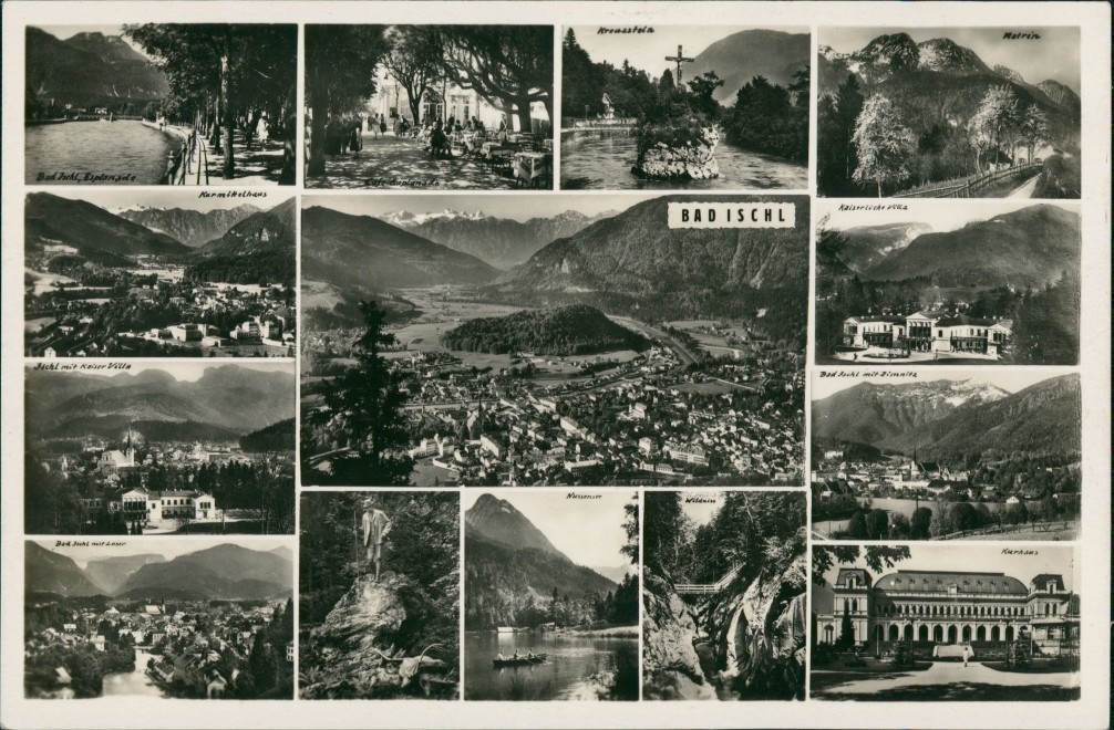 Foto Karte: Mehrbild-Postkarte mit 14 Stadt- und Umlandansichten - Bad Ischl
