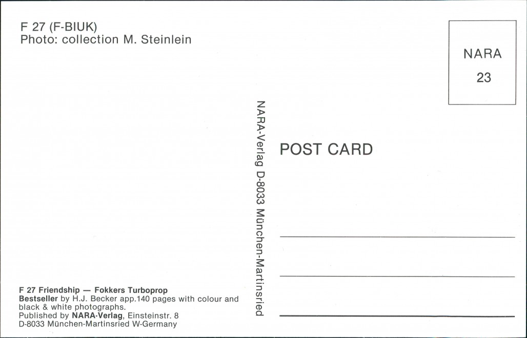 Ansichtskarte: PropellerFlugzeug F 27 Friendship - Fokkers Turboprop (F-BIUK)