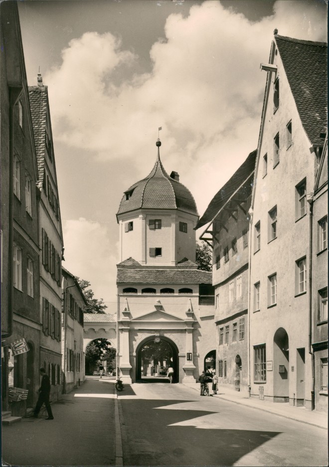 Foto Karte: Persone, Geschäft, Strassen Partie am Wester Tor - Memmingen