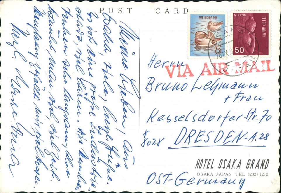 Ansichtskarte: Hotel Osaka Grand gel. Via Air Mail - Osaka