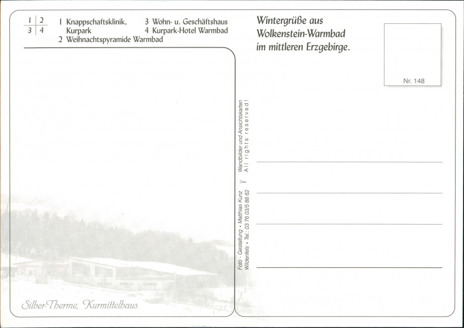 Foto Karte: Stadtteilansichten Mehrbild-AK ua. Klinik, Kurbad-Hotel uvm. - Warmbad-Wolkenstein
