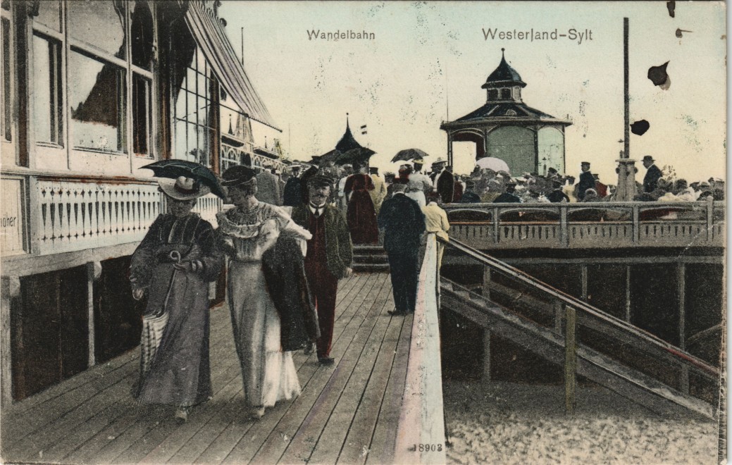 Ansichtskarte: Wandelbahn, feine Damen - Pavillon - Westerland-Sylt