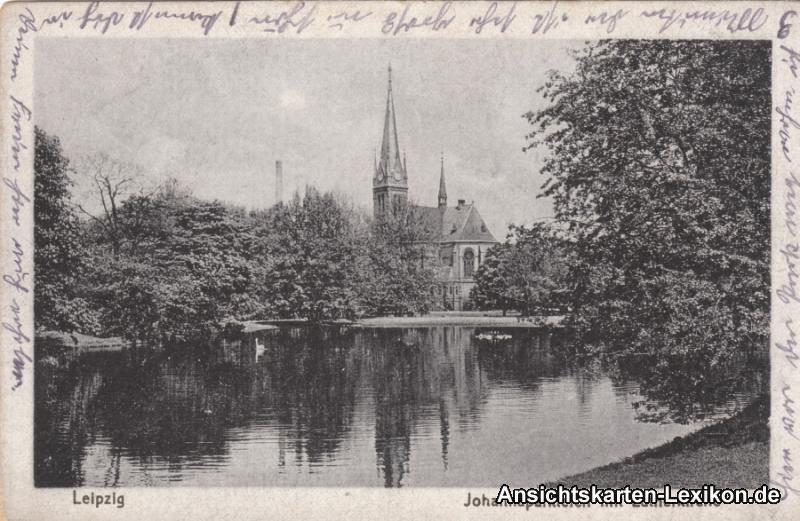 Ansichtskarte: Johannaparkteich mit Lutherkirche - Leipzig
