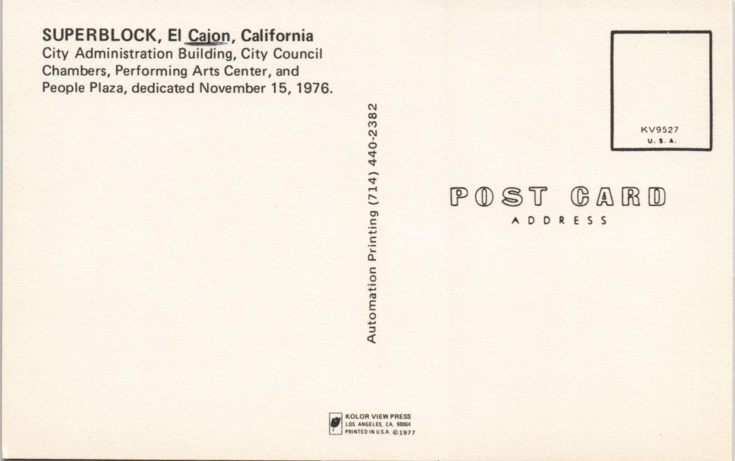 diese Karte können Sie hier kaufen:- El Cajon SUPERBLOCK, California City Administration Building, City Council 1977