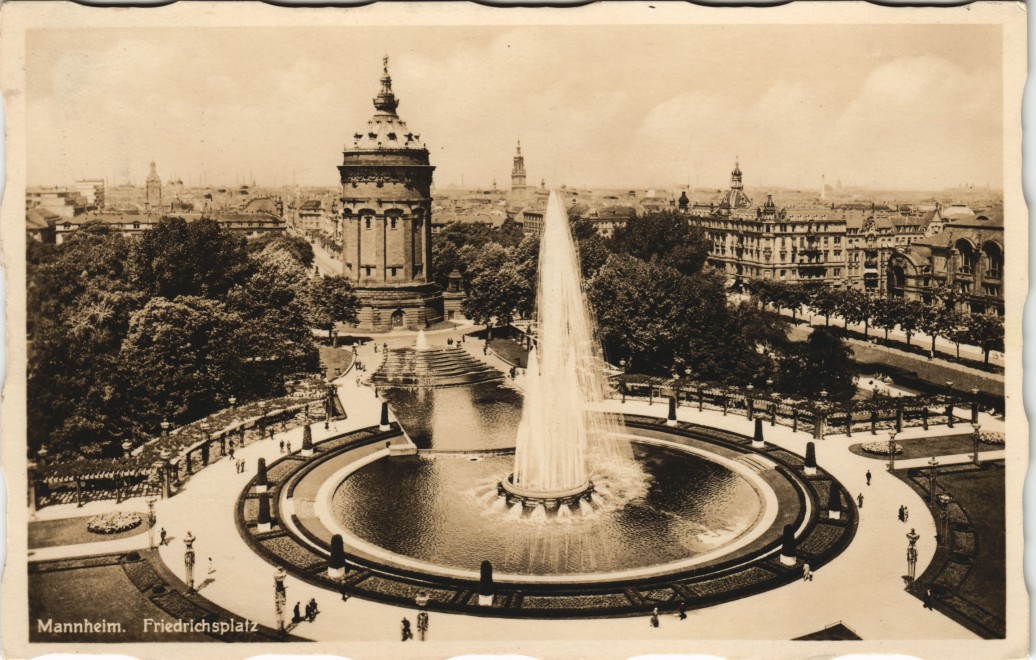 Foto Karte: Friedrichsplatz, Wasserturm, Wasserspiele - Mannheim