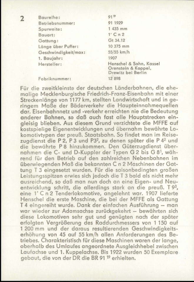 - Eisenbahn Dampflokomotive DDR Sammelkarte Lok d. dt. Länderbahnen BR 91