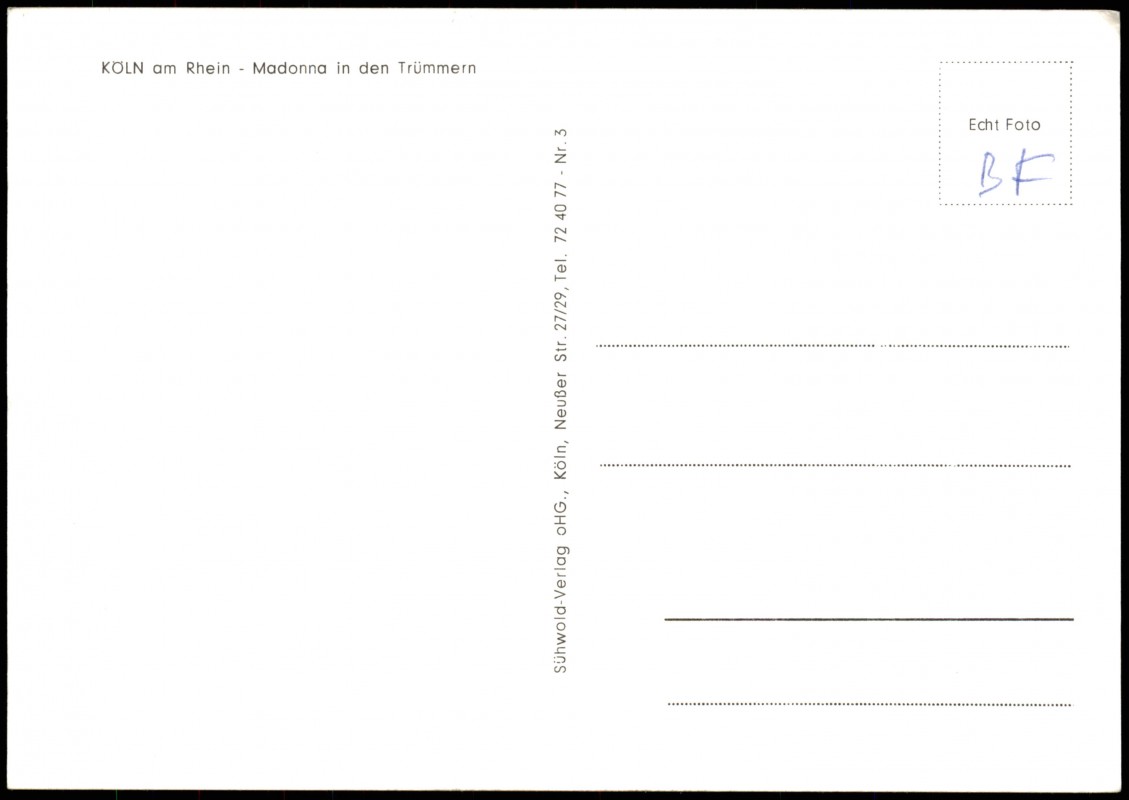 Foto Karte: Kirchen Innenansicht Madonna in den Trümmern - Köln