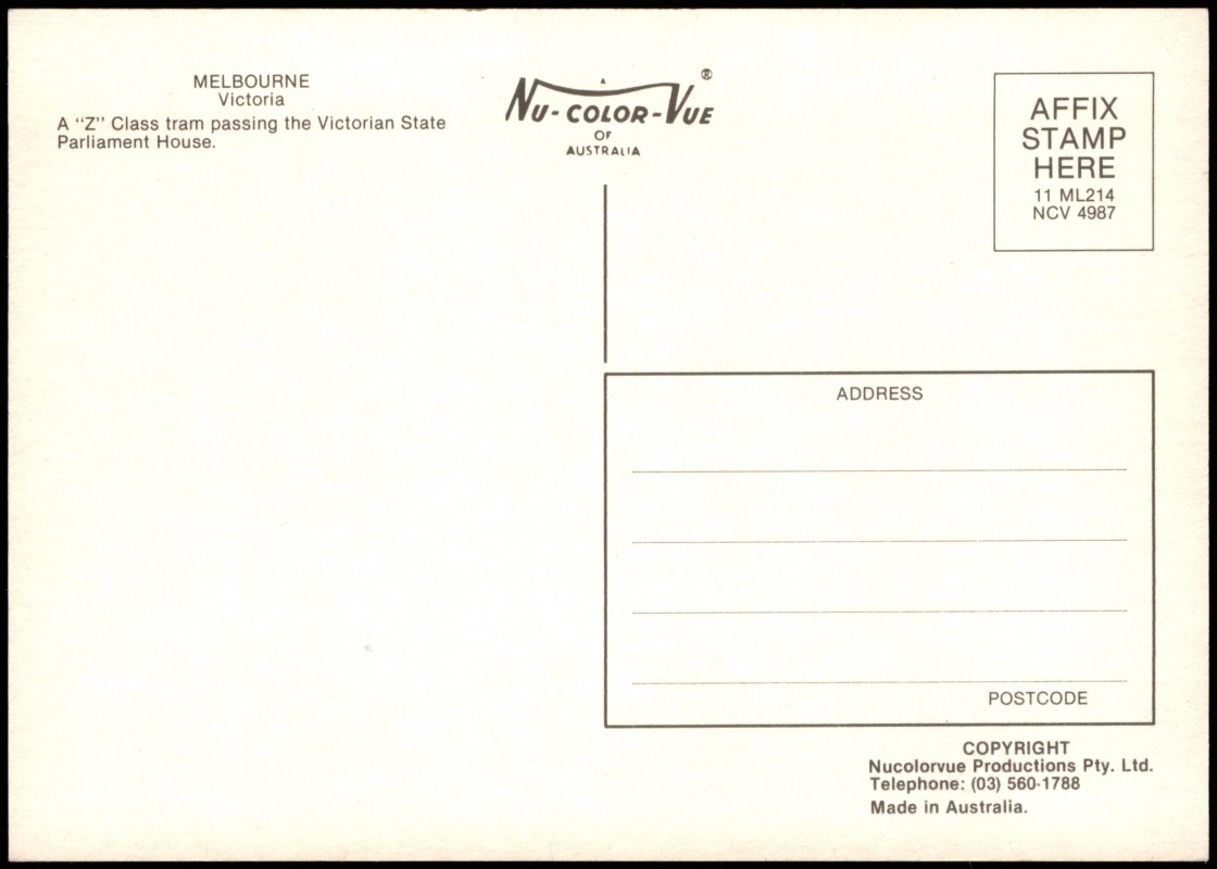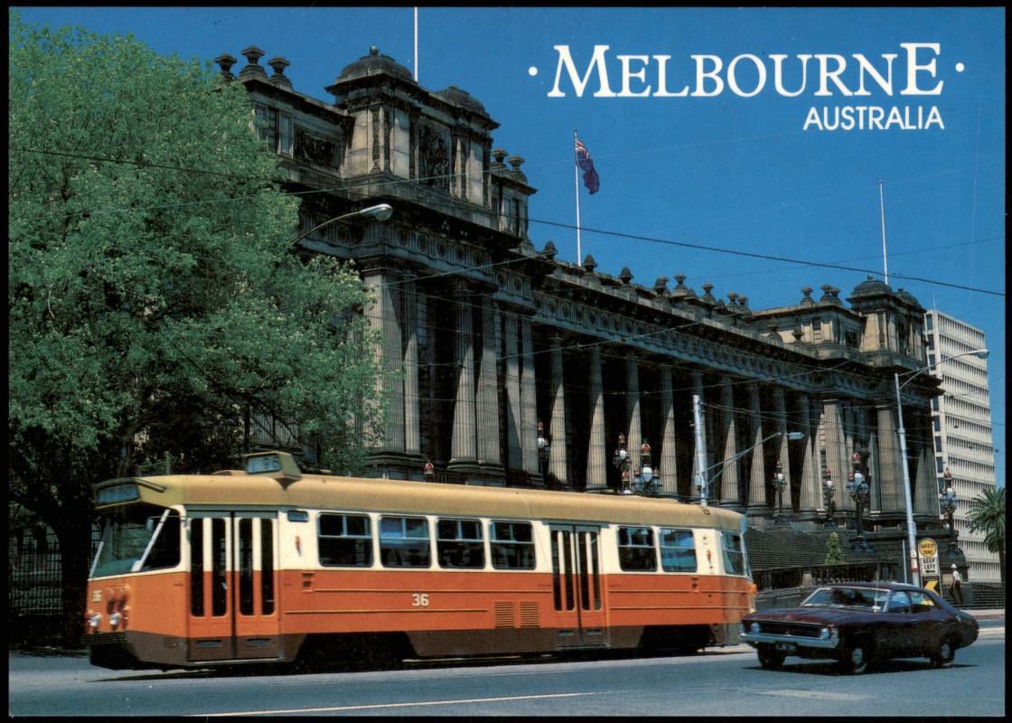 Ansichtskarte: A "Z" Class tram passing the Victorian State - Melbourne
