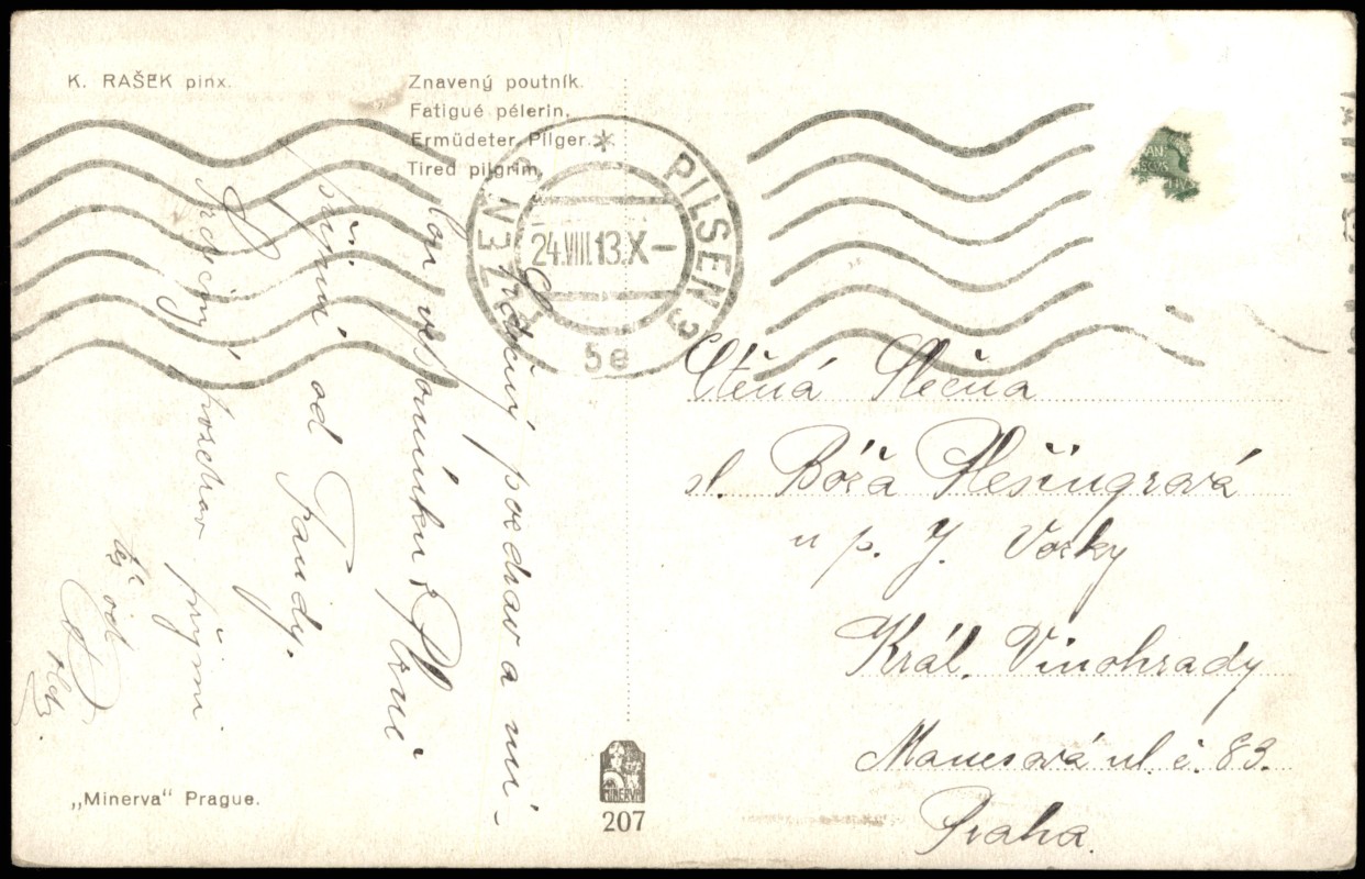 - Künstlerkarte Künstler Maler RAŠEK pinx Ermüdeter Pliger