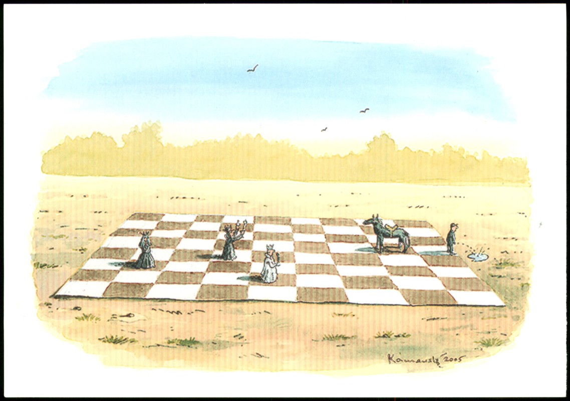 - Schach Chess - Spiel - Künstlerkarte Zeichnung
