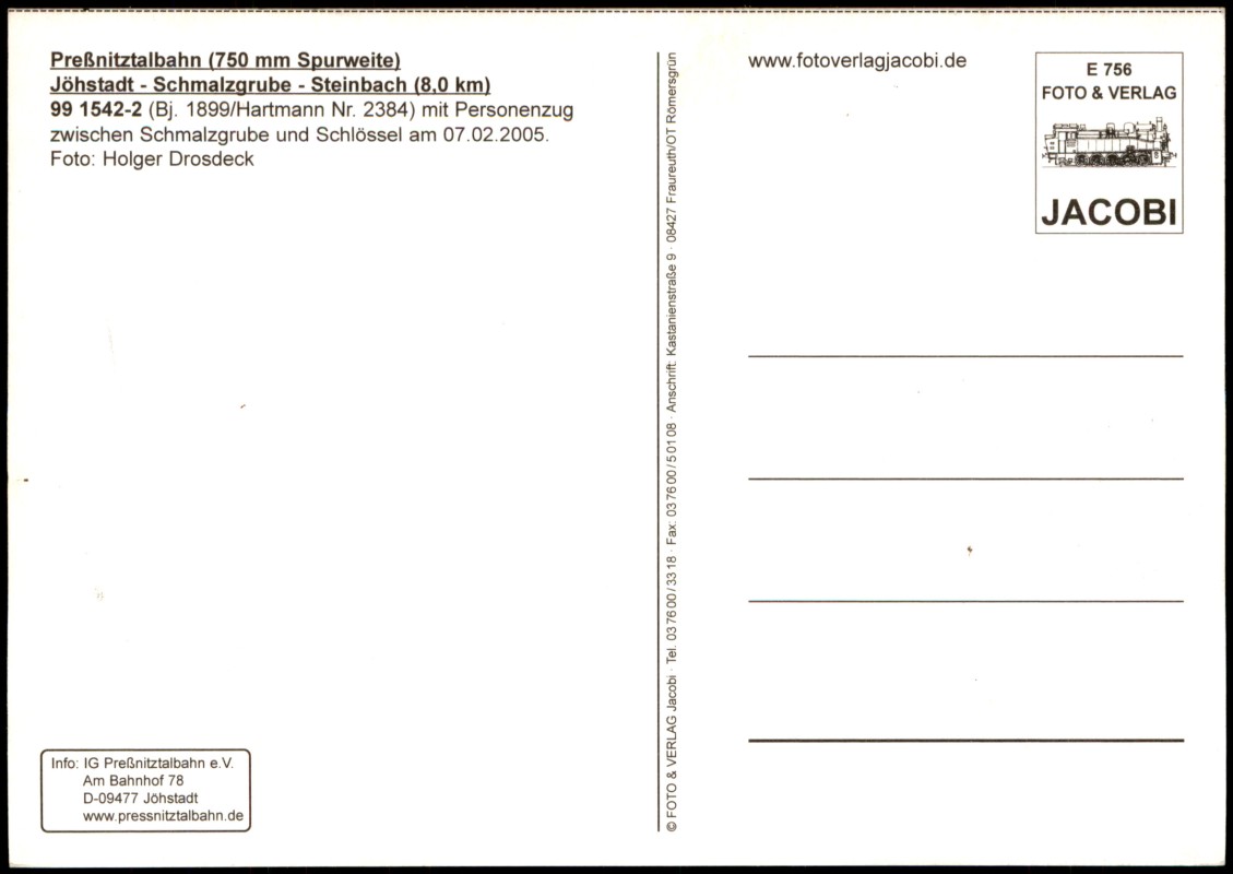 Foto Karte: Kleinbahn Eisenbahn Preßnitztalbahn Jöhstadt-Schmalzgrube-Steinbach