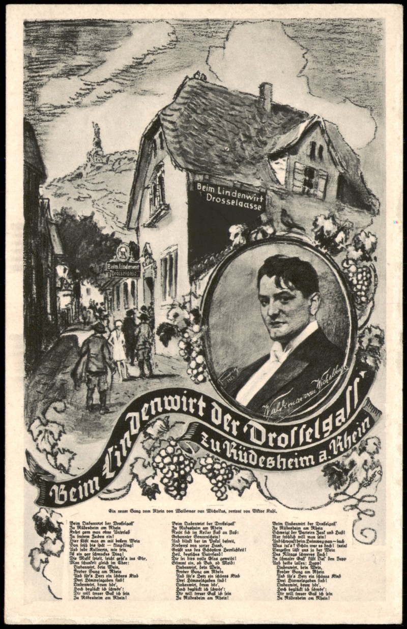 Ansichtskarte: Beim Lindenwirt Drosselgasse - Künstlerkarte - Rüdesheim (Rhein)