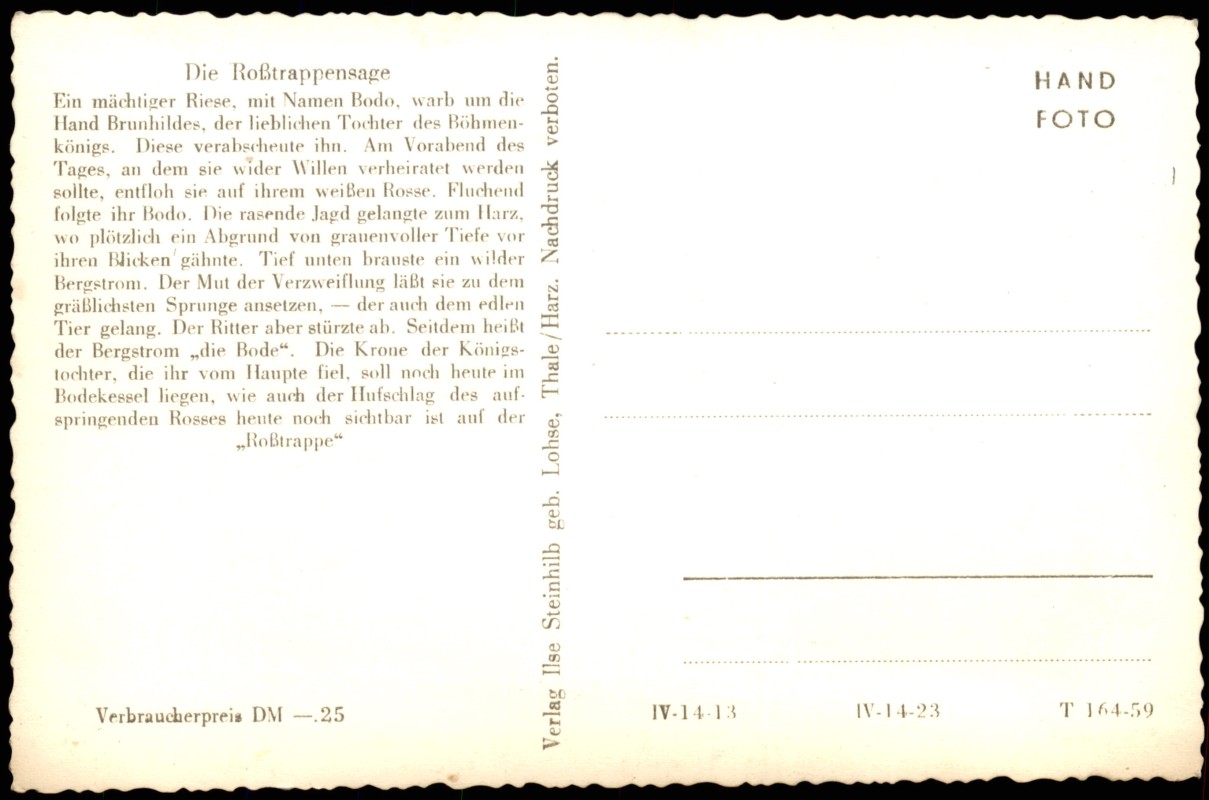 - Bildkarten - Verlag u. -Vertrieb Ilse Steinhilb geb. Lohse, 4308 Thale/Harz
