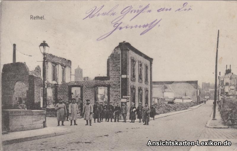 Ansichtskarte: Zerstörtes Haus mit Soldaten - Rethel