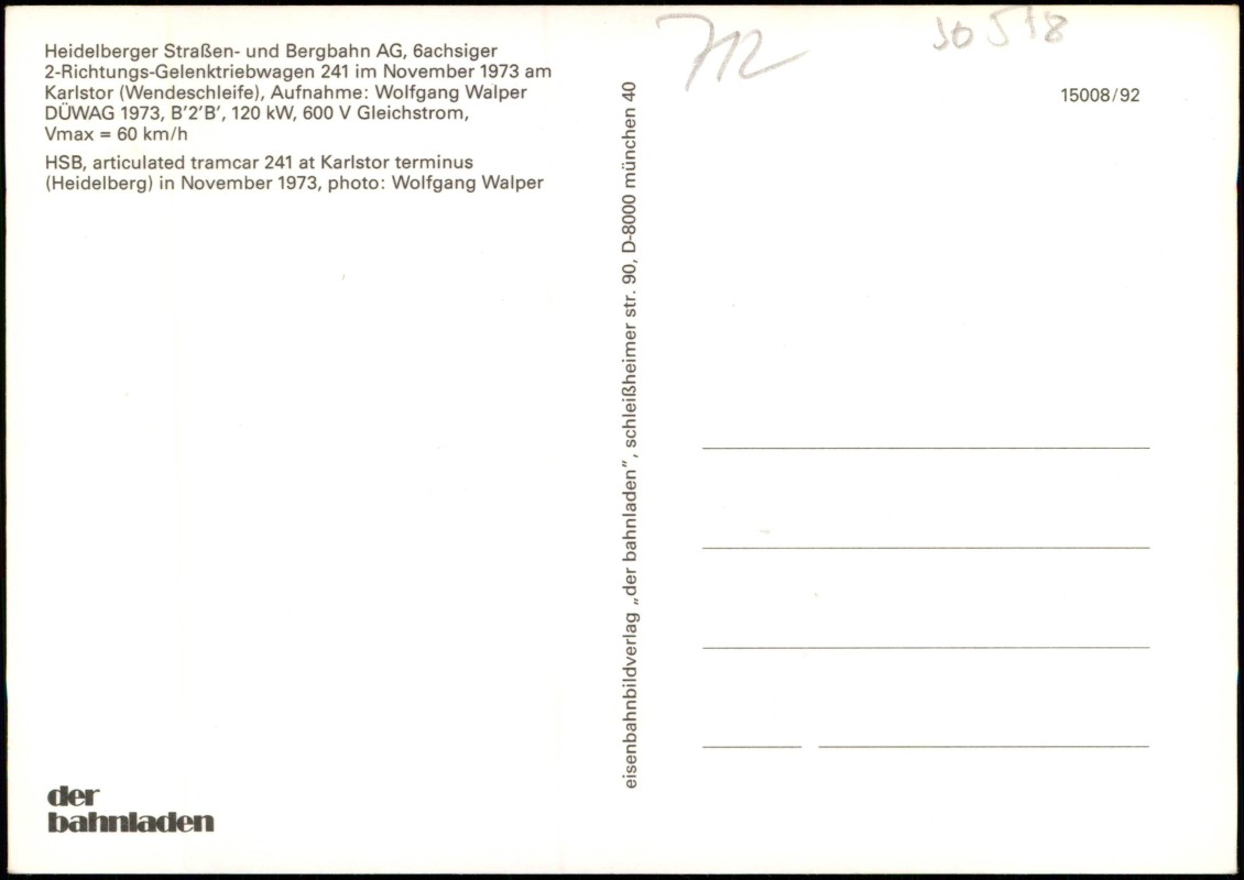 Ansichtskarte: Verkehr/KFZ - Straßenbahn Karlstor DÜWAG - Heidelberg