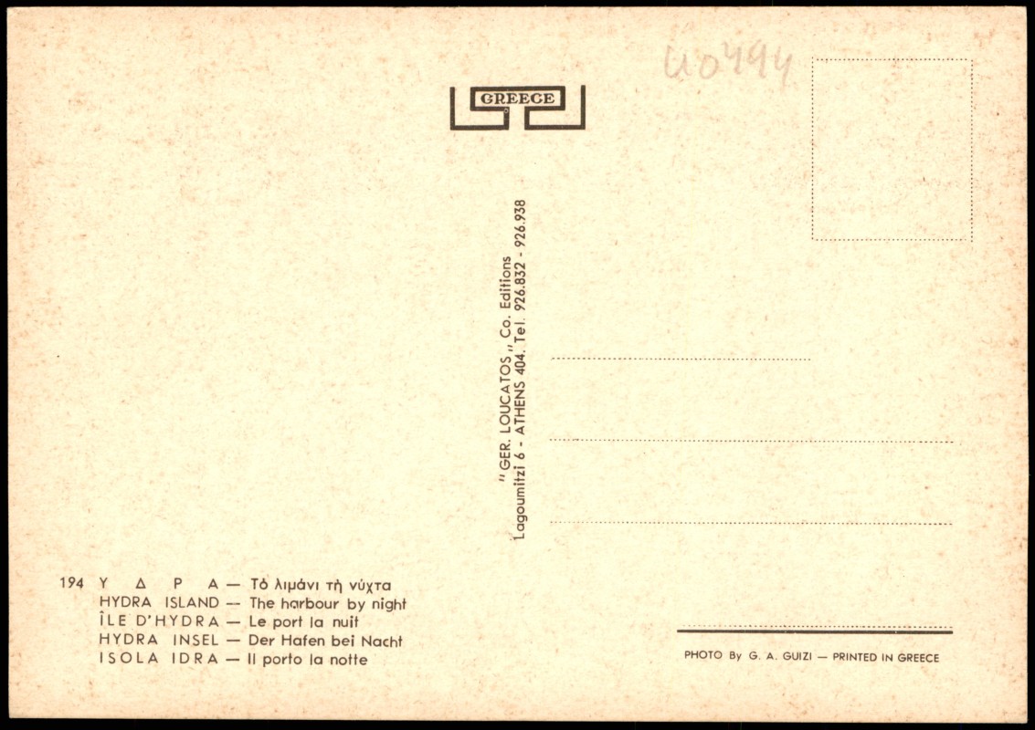 Foto Karte: HYDRA ISLAND HYDRA INSEL Hafen bei Nacht - .Griechenland