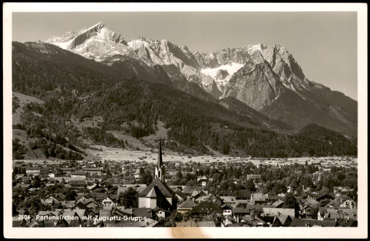 Ansichtskarte: Stadt mit Zugspitzgruppe, Fotokarte - Garmisch-Partenkirchen
