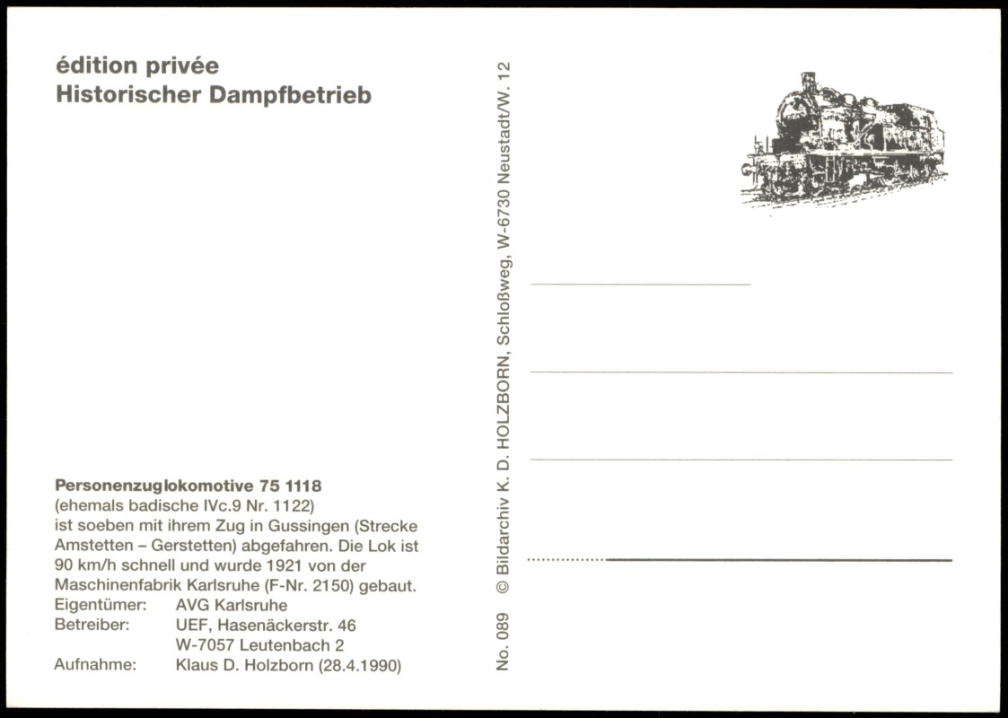 Foto Karte: Eisenbahn & Bahn-Verkehr Dampflokomotive Personenzug Lokomotive