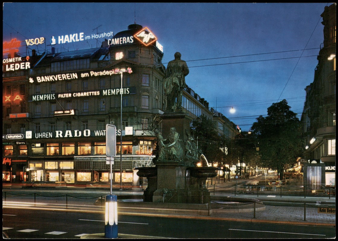 - Bahnhofplatz und Bahnhofstrasse bei Nacht Leuchtreklame
