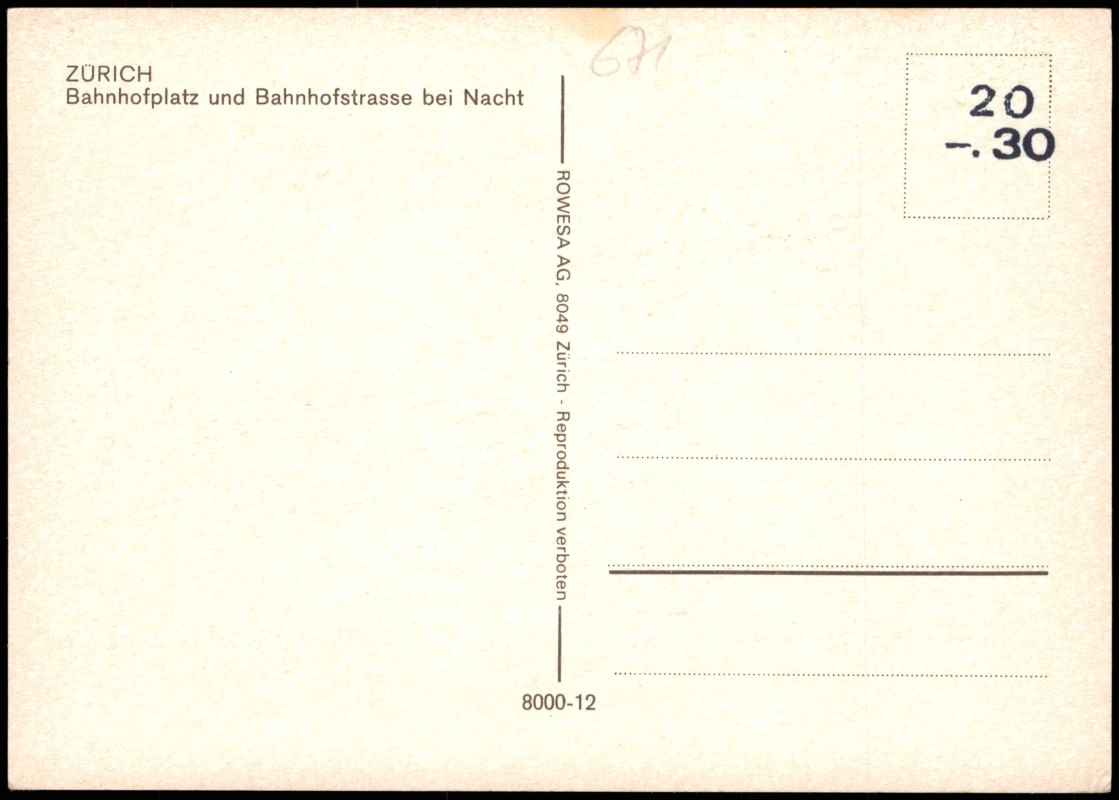 Ansichtskarte: Bahnhofplatz und Bahnhofstrasse bei Nacht Leuchtreklame - Zürich
