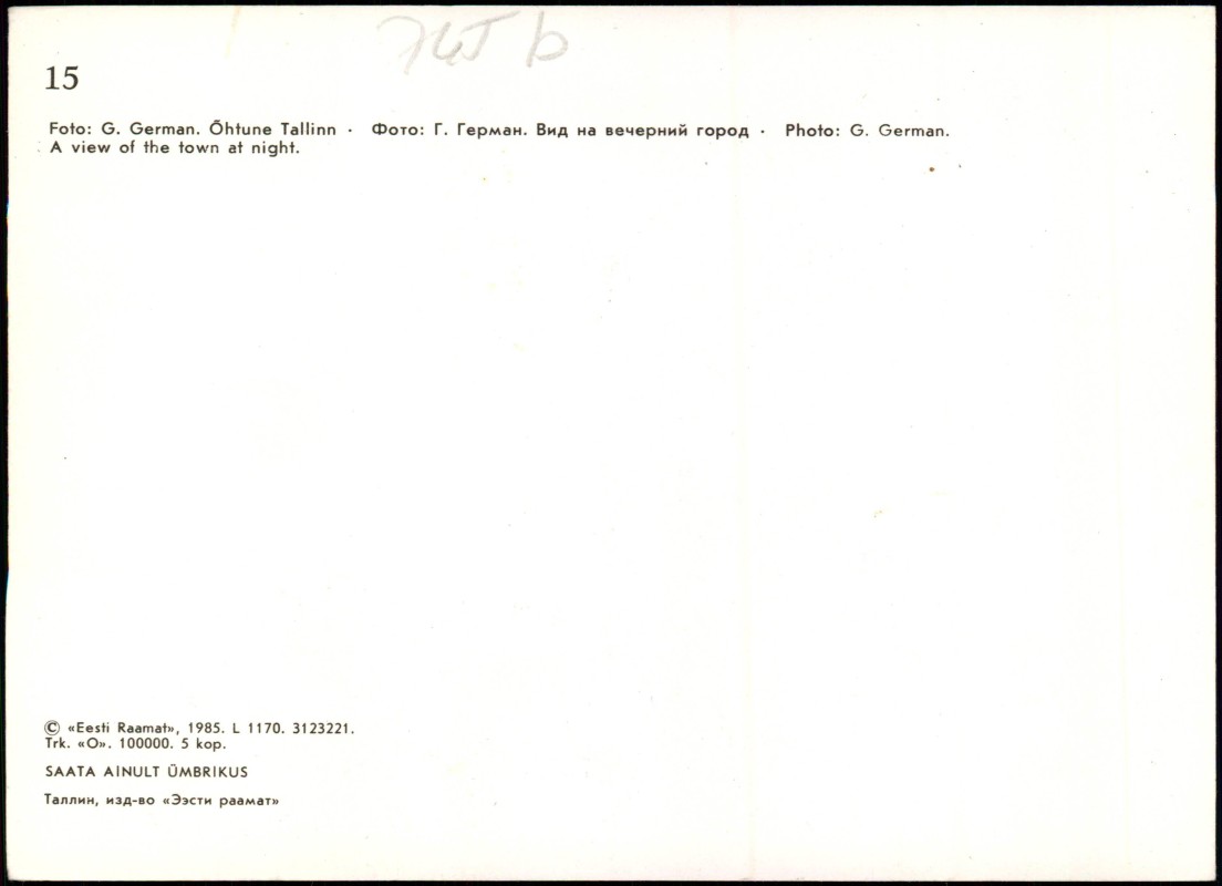 historische Ansichtskarte von 1985: Stadt bei Nacht:: Reval Adressseite