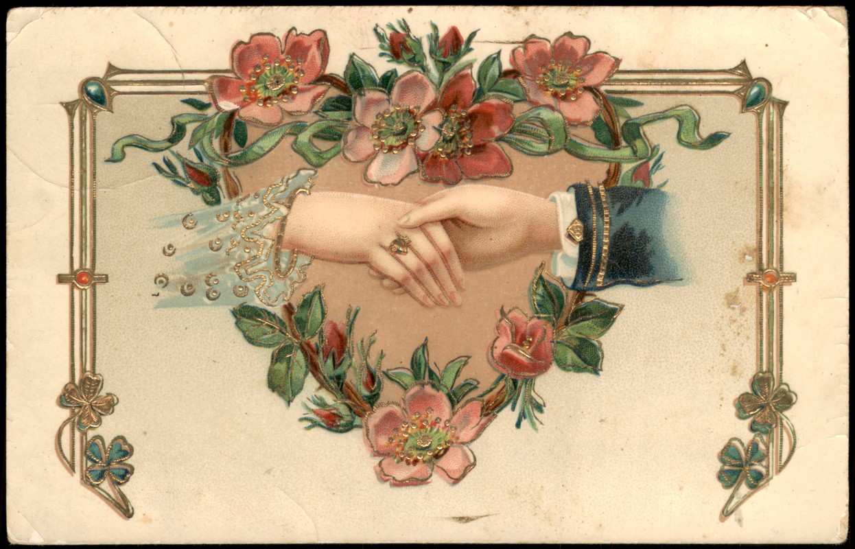 Ansichtskarte: Liebe Liebespaare - Love Herz Heart Rosen Hände