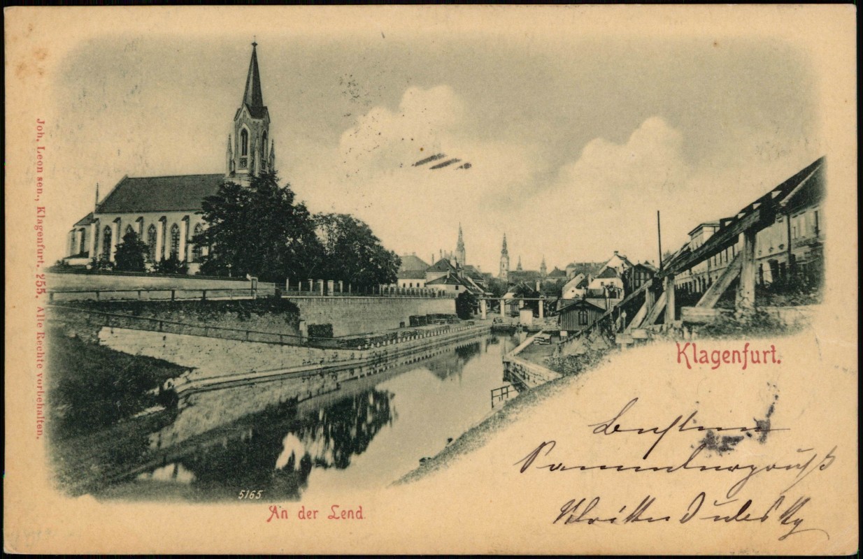 Ansichtskarte: An der Lend - Fluss- und Straßenpartie - Klagenfurt
