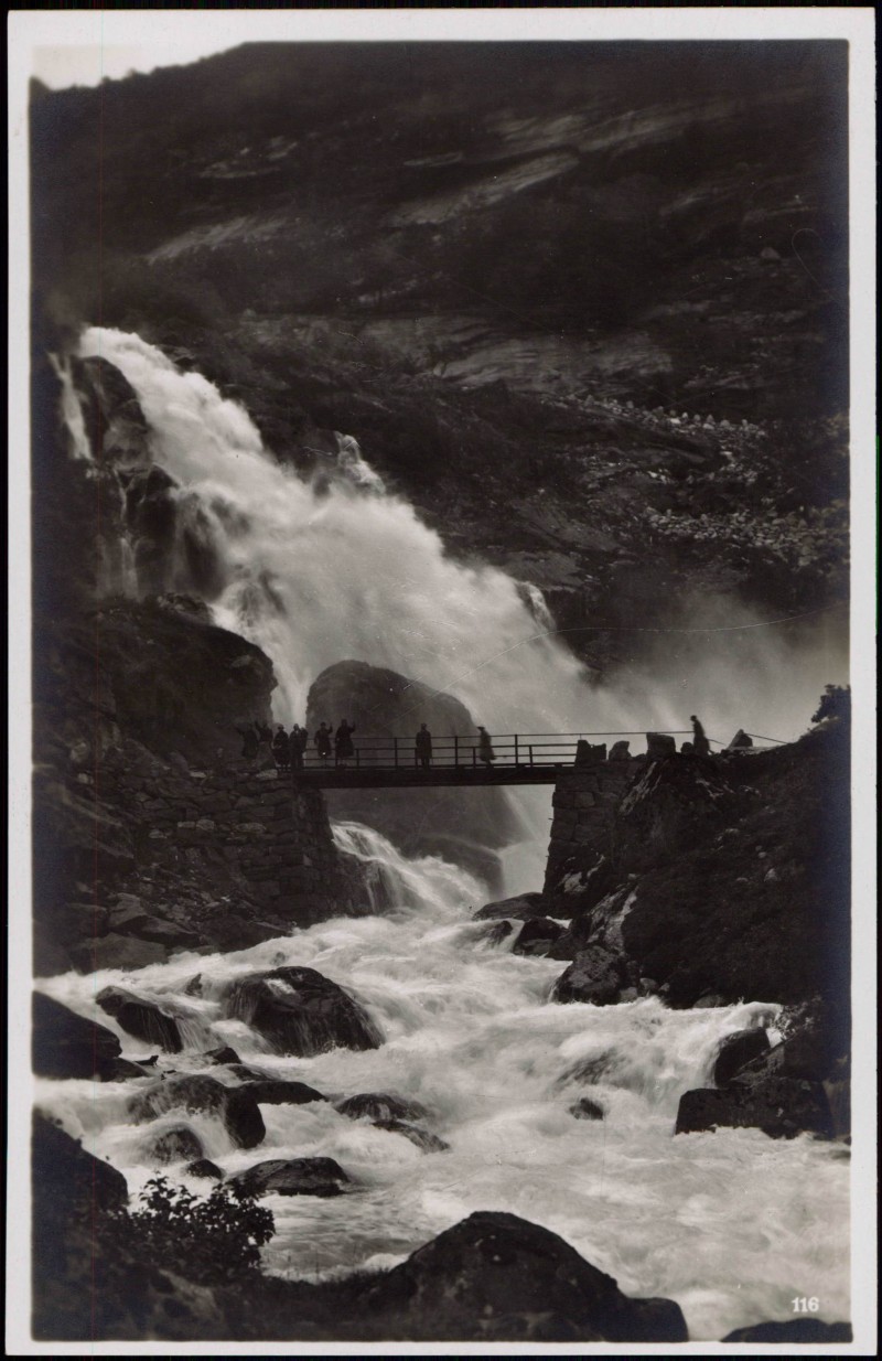 Foto Karte: Brixdalsfoss Wasserfall River Falls Waterfalls Norway - Briksdalsbre