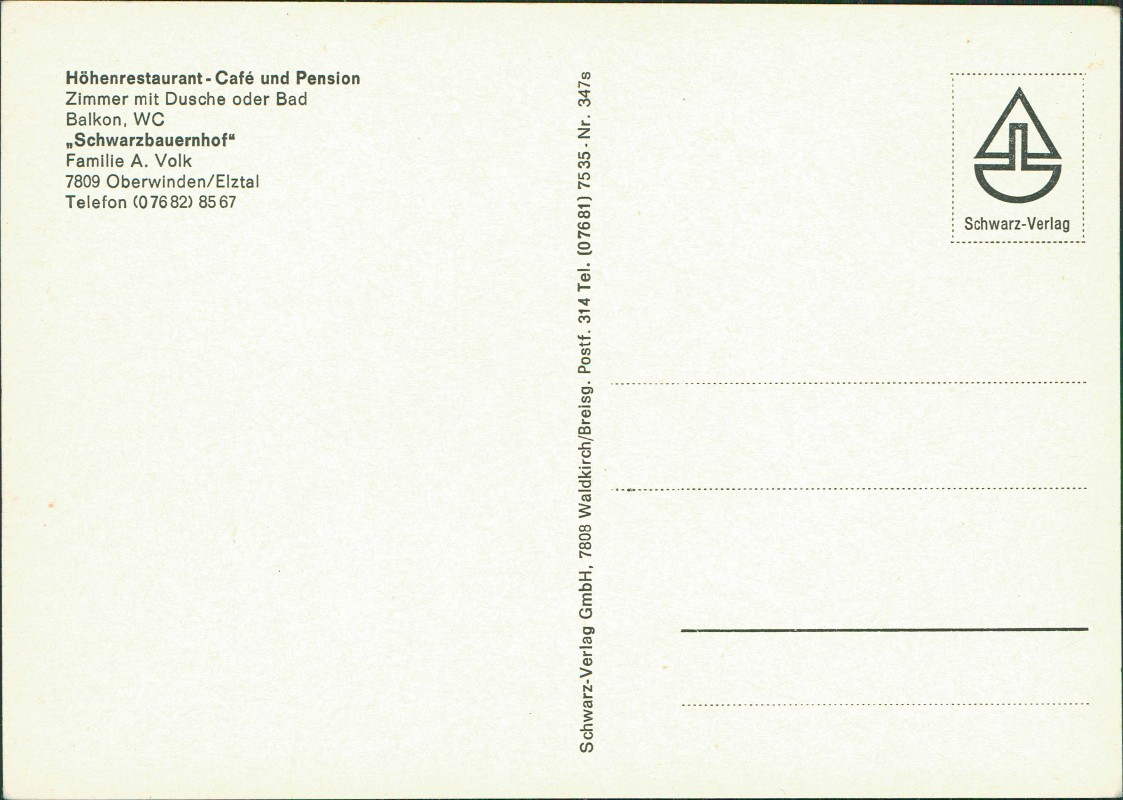 Foto Karte: Höhenrestaurant Café und Pension Schwarzbauernhof Familie A. Volk - Oberwinden Elztal-Winden