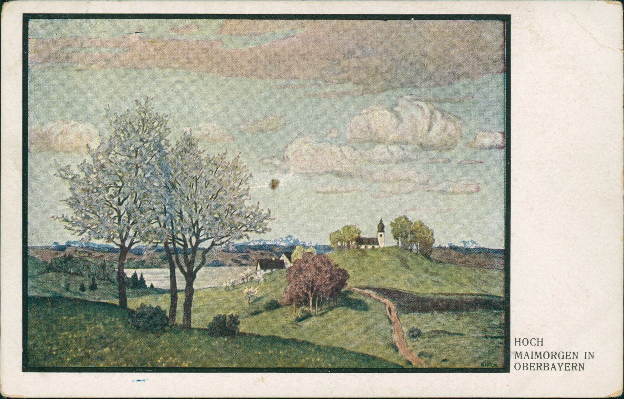 Ansichtskarte: Künstlerkarte HOCH: MAIMORGEN IN OBERBAYERN