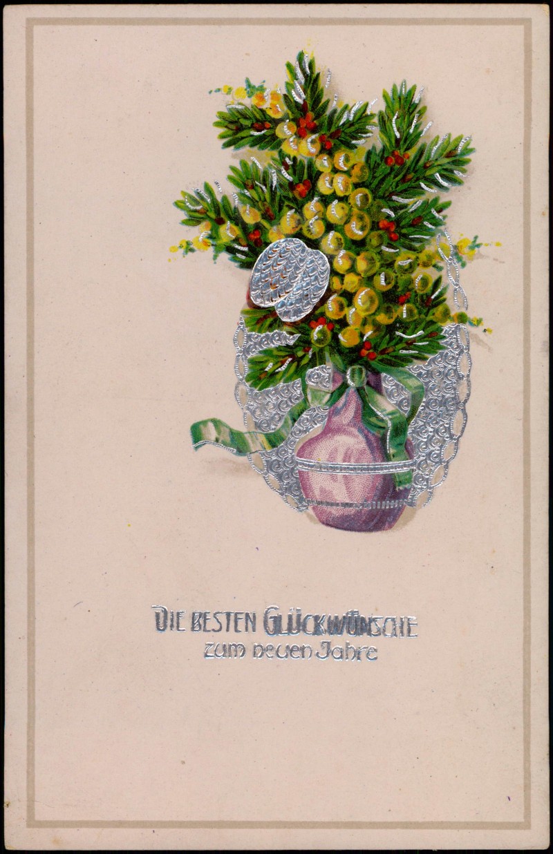 Ansichtskarte: Neujahr Sylvester New Year Blumen mit Silber-Ornamenten