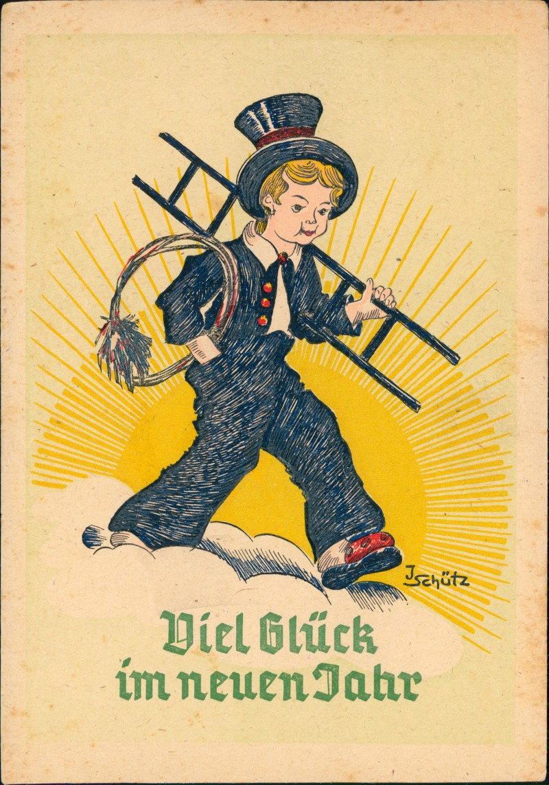 - Neujahr Sylvester New Year Schornfeger Künstlerkarte
