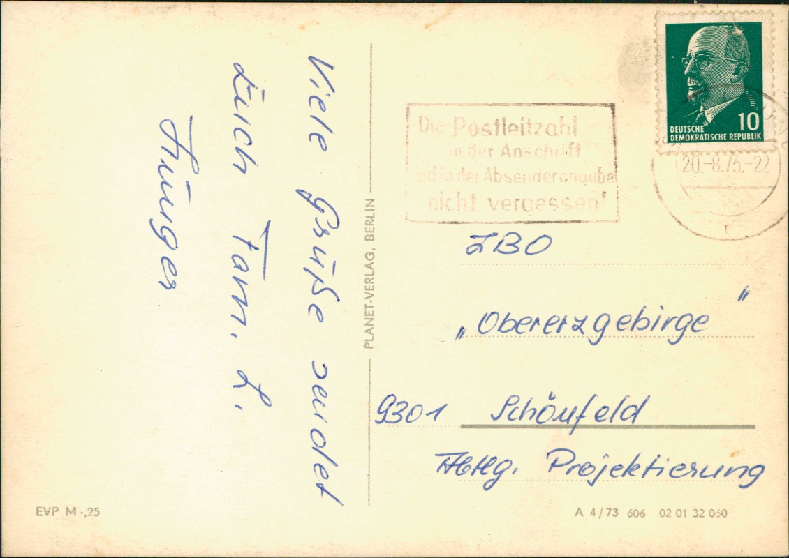 historische Ansichtskarte von 1973: Panorama, Kniepertor, Mariankirche:: Stralsund Adressseite Detailbild Detailbild