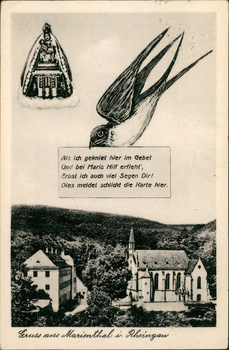 Foto Karte: Panorama-Ansicht (Schwalbe Grusskarte mit Segensspruch) - Marienthal (Rheingau)-Geisenheim