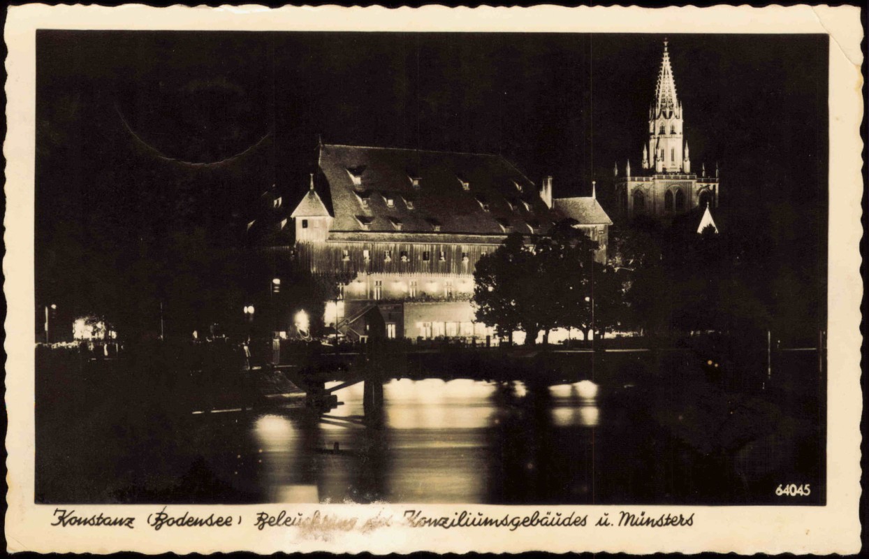 Ansichtskarte: Bodensee Beleuchtung Konziliumsgebäudes - Konstanz