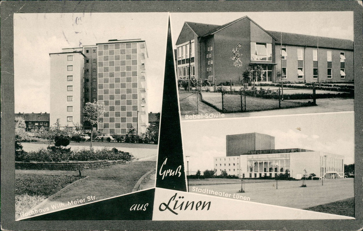 Ansichtskarte: Hochhaus Wilhelm Meier Straße, Bebel Schule - Lünen (Westfalen)