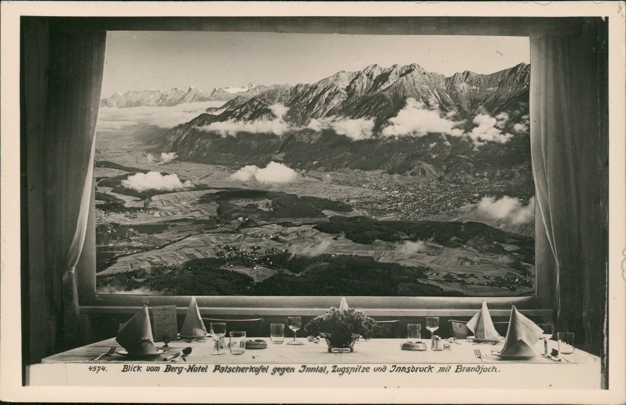 - Blick vom Berg-Hotel Patscherkofel gegen Jnntal, Zugspitze und Brandjoch