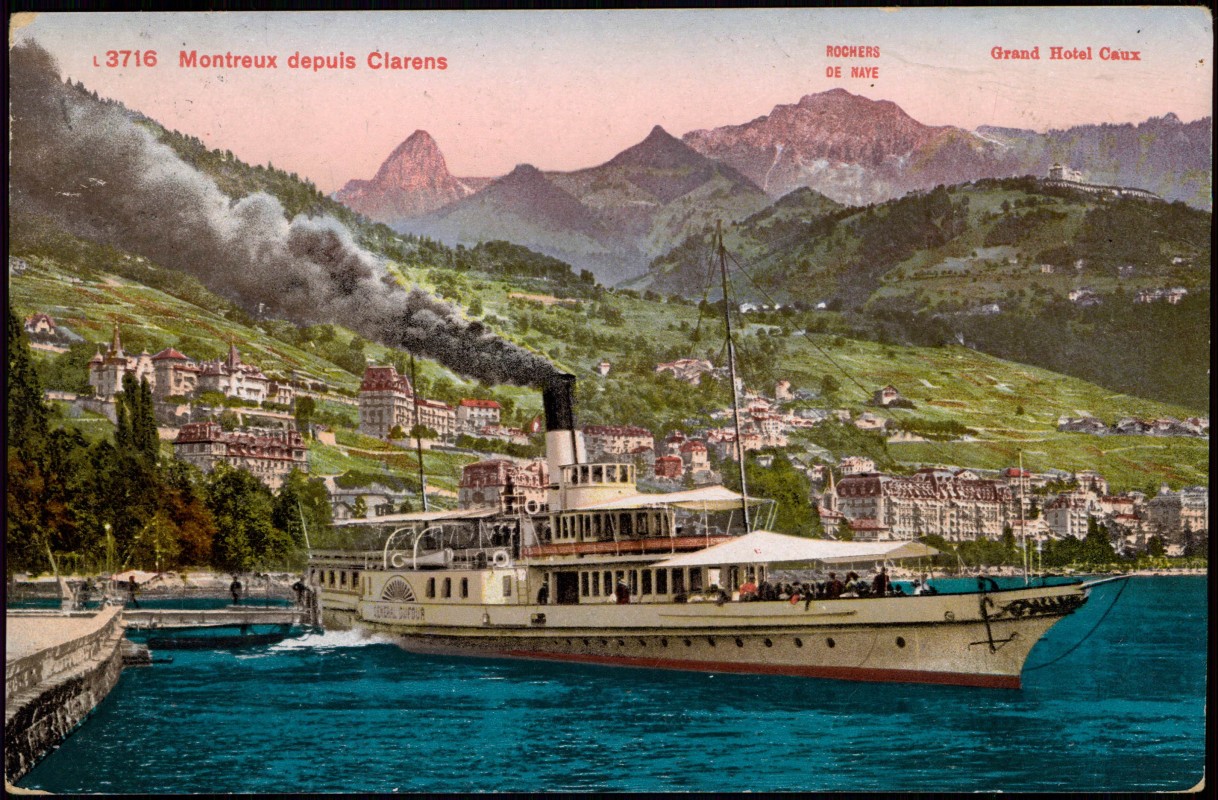 Ansichtskarte: Dampfer vor der Stadt - Montreux (Muchtern)
