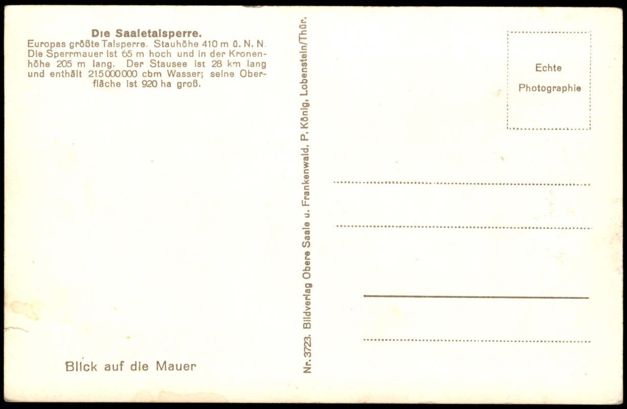 Foto Karte: Saaletalsperre Sperrmauer Europas größte Talsperre - Bad Lobenstein