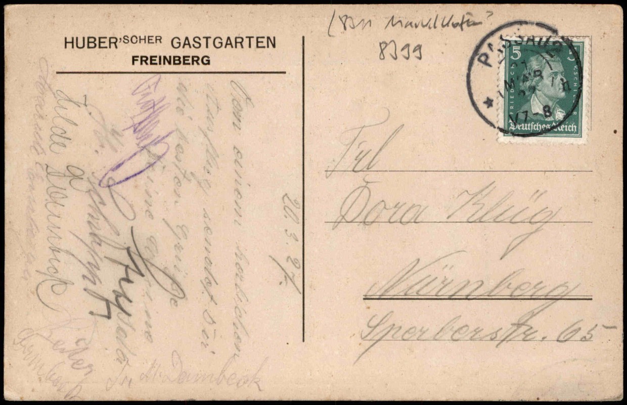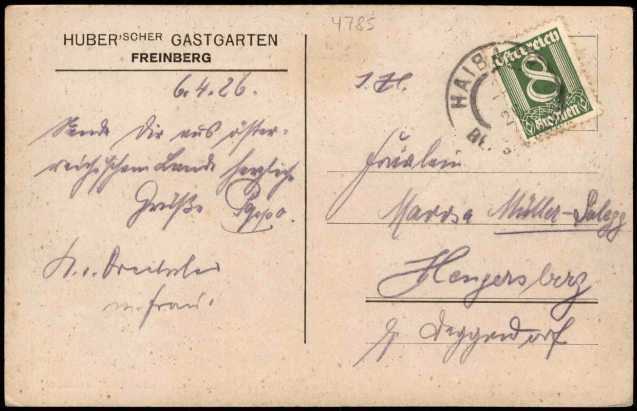 Ansichtskarte: Huberscher Gastgarten Künstlerkarte - Freinberg