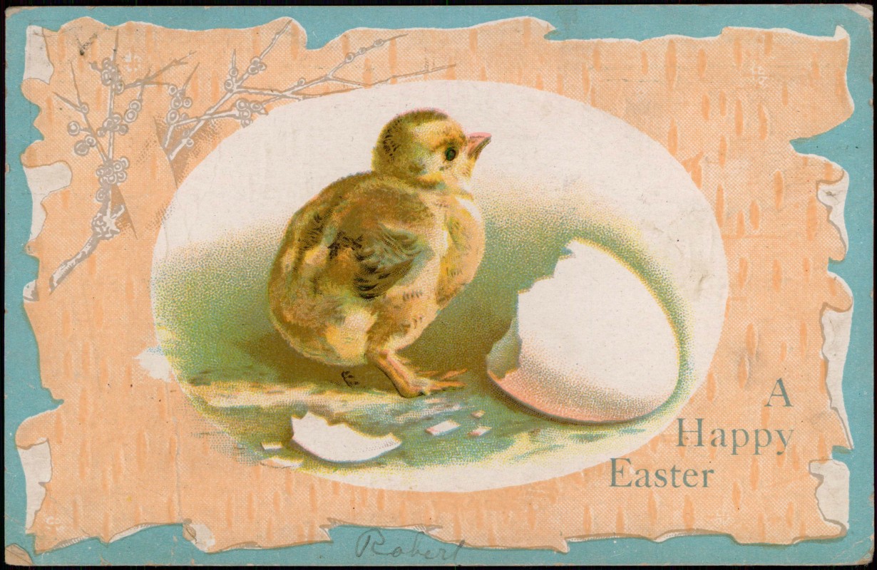 Ansichtskarte: Ostern Easter Küken schlüpft aus Ei Silber USA