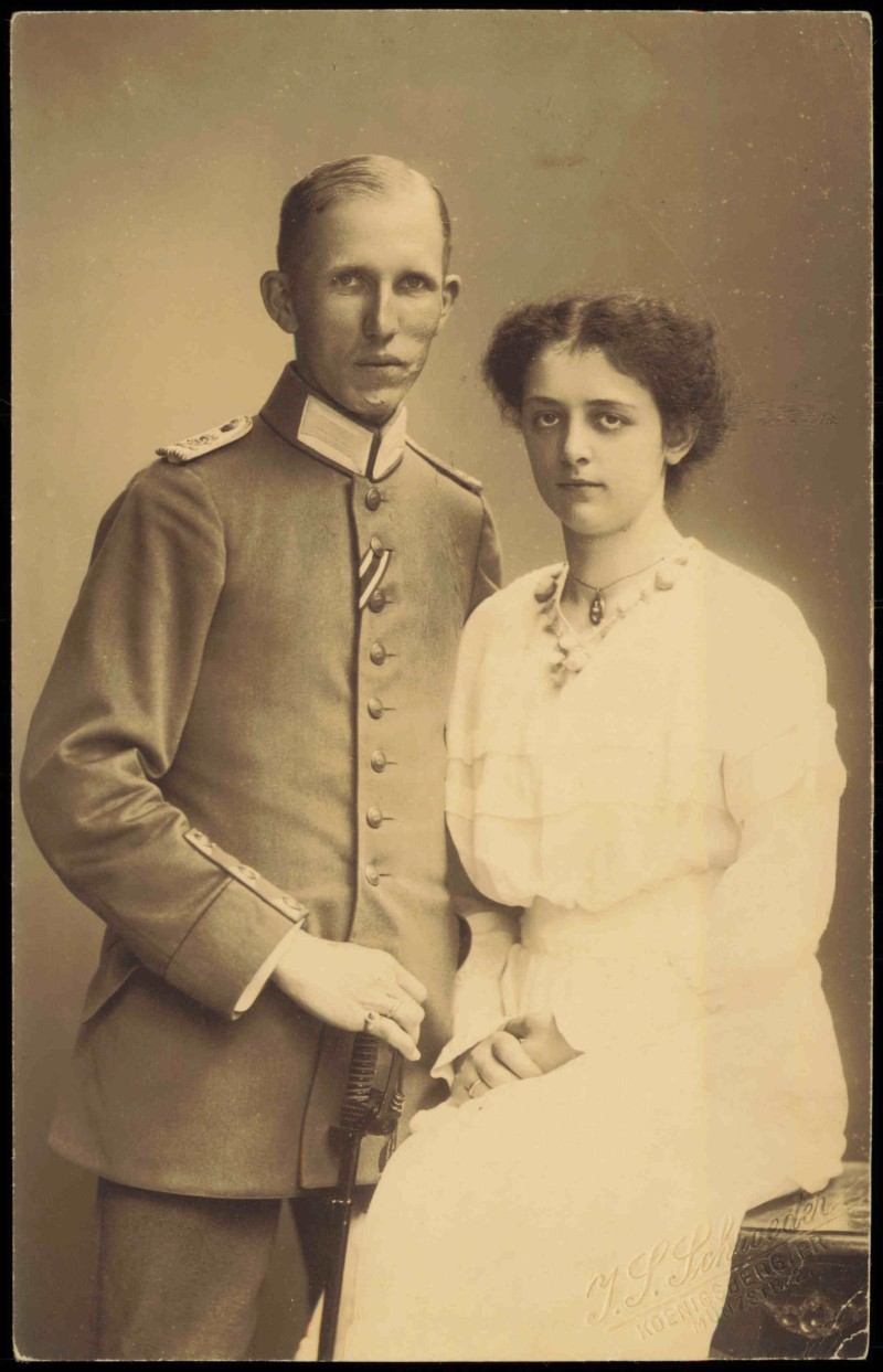 - Portrait Soldat mit Schwert und Narben und seiner Frau