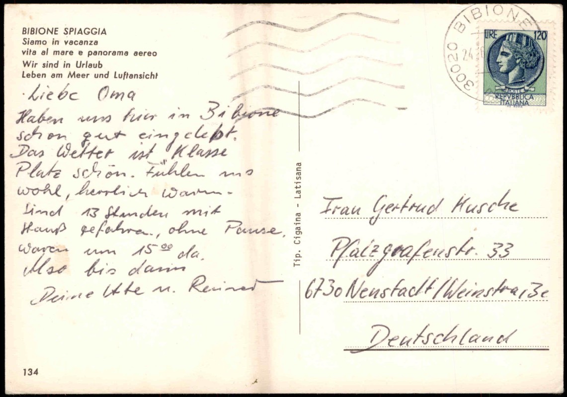 Foto Karte: 2-Bild-Karte Strand & Luftbild BIBIONE SPIAGGIA - Bibione